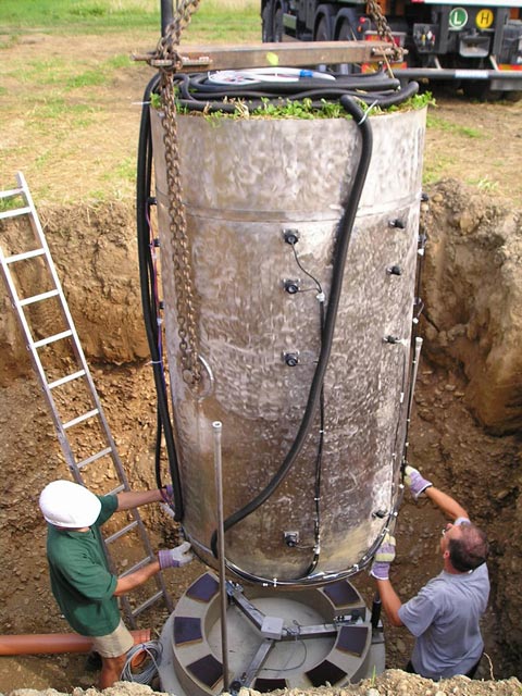 A beépítésre kész talajmonolit a munkagödör mellett