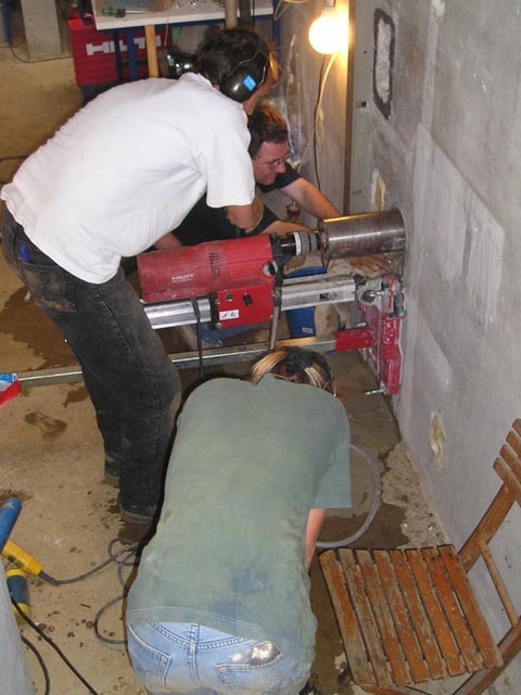 Kezelőakna betonfalának átfúrása