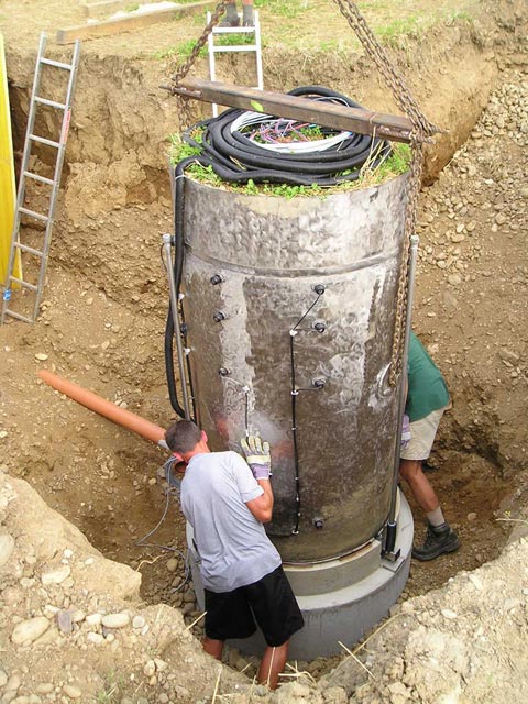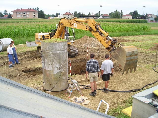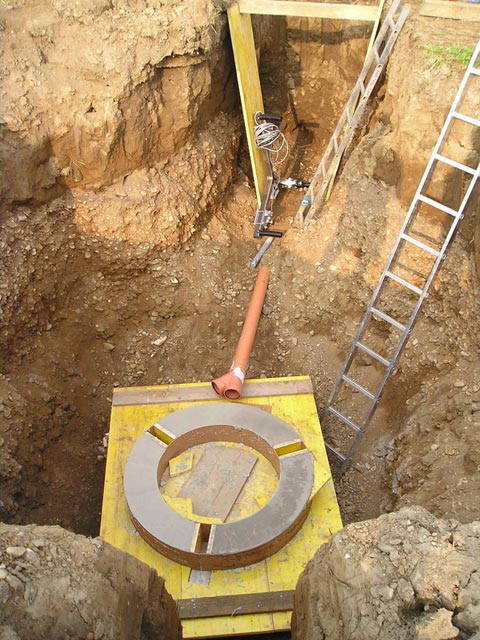 A beépítésre kész talajmonolit a munkagödör mellett