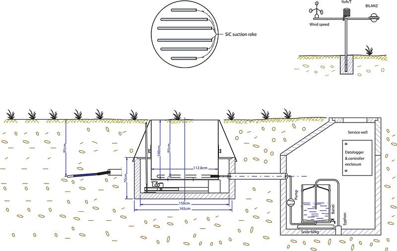 Hengeres liziméter, keresztemtszet felülete 1 m2, monolit magassága 1 m. Felépítése azonos a hidro-liziméterével, azt kiegészítve egy a víz- és energiamérleg szempontjából releváns paraméterek mérésére szolgáló meteorológiai állomással.